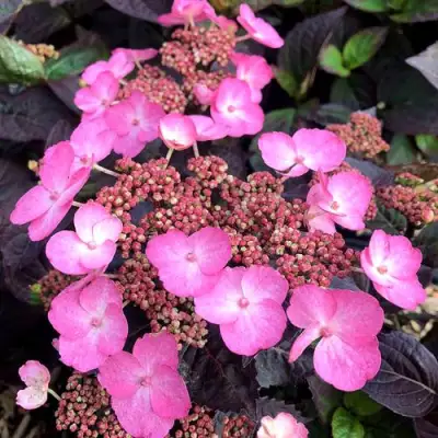 Гортензия пильчатая Даредевил (Hydrangea macrophylla 'Daredevil'), выведенная Жан-Полем Давассом в Голландии, – это низкорослый, плотный сорт гортензии Даредевил, который отличается уникальной темной листвой и продолжительным цветением. Этот компактный кустарник с округлой, раскидистой кроной достигает высоты всего 50–60 см при диаметре 100 см. Сорт прекрасно подходит для одиночных и групповых посадок, создания живой изгороди и может использоваться для зимних букетов в качестве сухоцвета в Беларуси.
