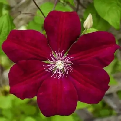 Листья у клематиса небольшие, тройчатые, перистосложные, темно-зеленого цвета. За один сезон растение способно образовать до 5 побегов, которые с течением времени одревесневают. Корневая система у кустарника мощная, может уходить в почву на глубину до 1 метра. Цветы клематиса данного сорта необыкновенно красивы: с бордовой или пурпурной окраской, бархатные. Растение способно украсить любой ландшафт, особенно эффектно выглядит на светлом фоне (например, оплетая белые стены). Размеры цветков достигают 15 см, тычинки ярко-желтого цвета, пыльники – бледно-пурпурные.