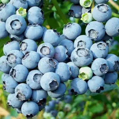 Саженцы голубики Пуру обладают высоким потенциалом урожайности: средняя продуктивность достигает до 7 кг с куста. Плоды отличаются крупными размерами, достигая 20 мм в диаметре и весом до 2,2 г, имеют приплюснуто-округлую форму и светло-синюю окраску. Кожица плодов прочная и легко снимается, а мякоть, обладающая зеленоватым оттенком, поражает своим отличным сладким вкусом и приятным ароматом. Ягоды надежны в хранении: не осыпаются и имеют хорошую лежкость.