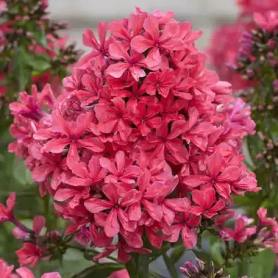 Цветы флокса "Клеопатра" — это великолепные шедевры природы, обладающие прекрасной формой и насыщенной вишнево-розовой окраской. Каждый цветок имеет звездообразную форму и достигает в диаметре 3-4 см. Лепестки двуслойные, что придает им дополнительный объем и изящество. Аромат этих цветов благоухающий, с умеренной интенсивностью. Период цветения длится с июля по август, и на протяжении всего этого времени растение радует обильным цветением.