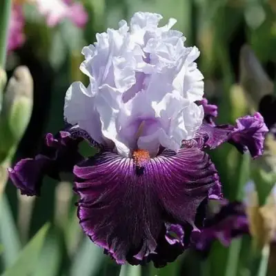 Диаметр цветка колеблется от 13 до 15 см и характеризуется фиолетово-синей окраской, которая волнует и восхищает. Верхние лепестки (стандарты) окрашены в фиолетово-голубые тона с легким розоватым оттенком, а нижние лепестки (фолы) отличаются насыщенным темно-фиолетовым цветом. В центре цветка расположена желтая бородка, которая добавляет яркости и контраста в общую палитру. Лепестки отличаются сильно гофрированной текстурой, что придает цветам особую выразительность. Ирисы Блуберд Вайн имеют слабый аромат, что делает их идеальными как для создания букетов, так и для групповых посадок.