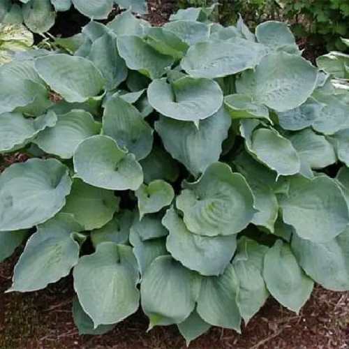 Листья округлой, чашевидной формы, размером до 30 см в длину и до 10 см в ширину. Они имеют очень плотную, жилкованную текстуру с волнистым краем. Окраска листвы – сине-зелёная, которая осенью радует глаз пышным жёлтым оттенком. Черешки листьев присутствуют, придавая дополнительную декоративность.