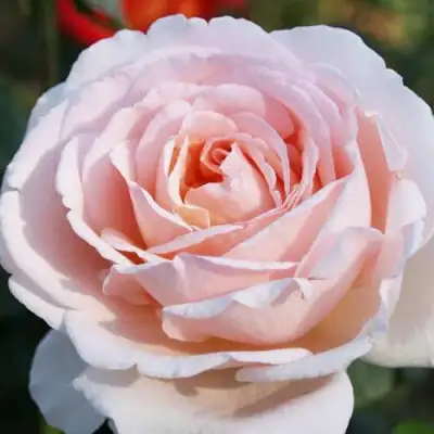 Цветок розы "Андре Ле Нотр" олицетворяет нежность и изысканность, что делает его идеальным выбором для срезки, выращивания в виде штамбовой формы, для клумб и бордюров. Бутоны этой розы имеют кремово-желтую окраску с розовым напылением, а раскрывшийся цветок представляет собой жемчужно-розовую красоту с пастельно-розовой каймой. Цветок крупный, с густой махровой структурой из 60-65 лепестков, что придает ему особую изящность и объем.