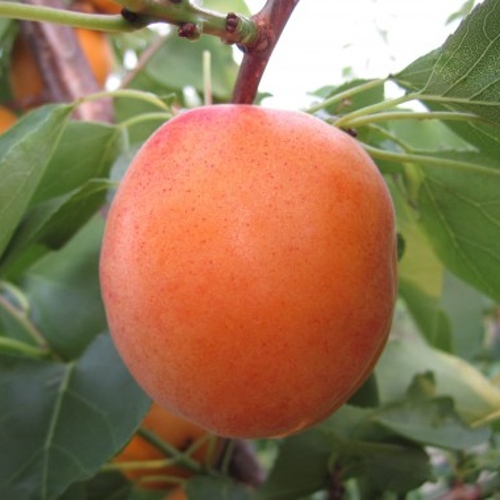 Плоды созревают к концу июля – началу августа. Абрикосы овальной формы, слегка приплюснутые, весом до 90 г. Кожица тонкая, ярко-оранжевая, слегка опушённая, с деликатным румянцем. Мякоть плотная, ароматная, сладкая. Плоды хранятся до двух недель без потери товарных качеств, отлично переносят перевозку.